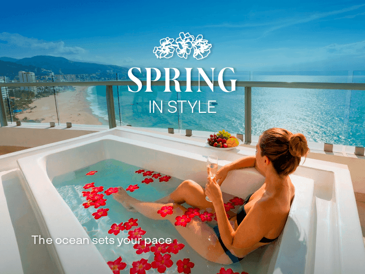 Enjoy the Spring Sale at Sunset Plaza Beach Resort, an all-inclusive luxury hotel in Puerto Vallarta featuring oceanfront suites and premium amenities
