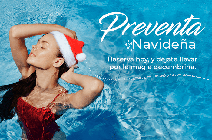 Anticípate a la Navidad junto al mar con nuestra preventa exclusiva: Disfruta una temporada llena de encanto con cartas a Santa, piñatas, y la elegante llegada de Santa, todo en un ambiente sofisticado frente al mar. Aprovecha menores gratis, paga hasta en 9 meses sin intereses y déjate consentir con nuestro plan todo incluido en un resort 4 diamantes.